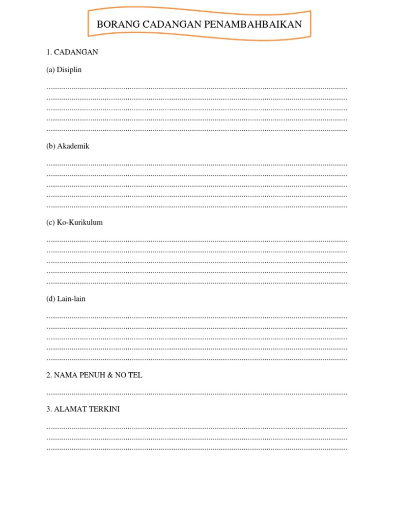 Related : Cadangan Penambahbaikan In English - Pelajar tingkatan 3 perlu menyiapkan kerja kursus yang merupakan jenis pentaksiran pelbagai instrumen yang terdapat dalam peperiksaan pt3..