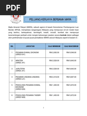 Related : Peluang Kerjaya Bersama Mara : Jika anda berminat boleh membuat permohonan melalui www.mara.gov.my kelayakan jawatan yang dimohon adalah..
