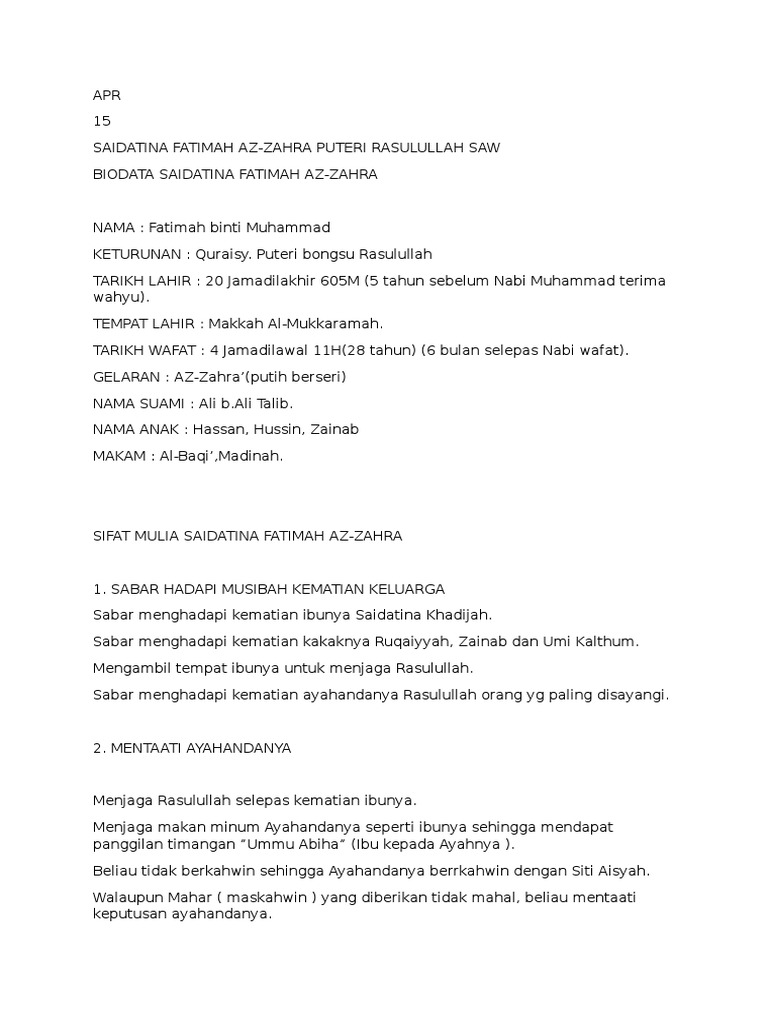 Moga dengan biodata ini akan dapat refreshkan kembali ingatan. Baginda wafat setelah selesai melaksanakan tugasnya sebagai rasul dan pemimpin negara. • 12 rabiu'l awal 11 h bersamaan 8 jun 632m • umur 63 tahun , 4 hari. Adnan bin udud bin nabi muhammad saw wafat beliau saw wafat pada tanggal 12 rabiul awal tahun 11 hijriyah di waktu. 3 diantaranya ialah anak laki laki dan 4 lainnnya ialah putri nabi muhammad dengan istrinya khadijah yang lahir pada 7 tahun sebelum diutusnya kenabian, 20 tahun sebelum h atau tahun 603.
