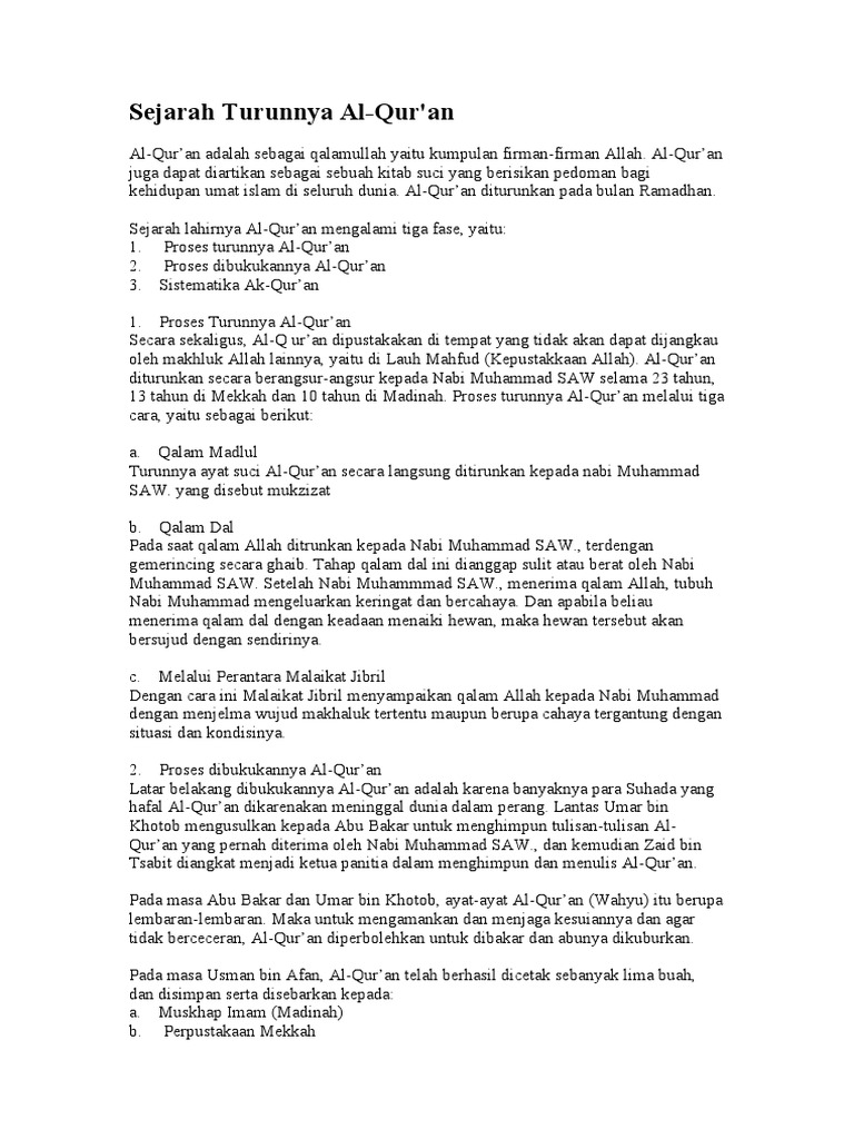Sejarah Penurunan Al-Quran Pdf : Download pdfs, fonts, scanned mushafs, quran e books, etc.. Download all 30 chapters/juz/para of the quran from 1 to 30 in separate hd resolution pdf files. Sebagai pedoman hidup bagi umat manusia. Arabic with 8 parallel english translations name: 73 comments on download all 1 to 30 para's of quran in arabic (pdf). Enter the password to open this pdf file.
